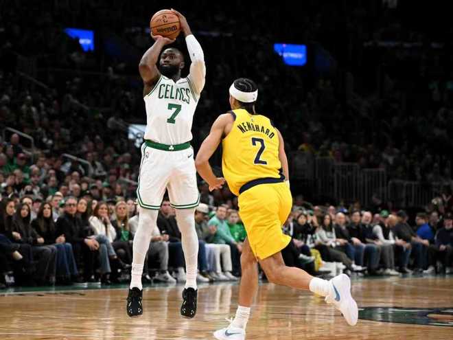 凯尔特人过去两场连赢热火与猛龙收获2连胜,步行者过去4场遭遇4连败,本赛季前三次交锋凯尔特人1胜2负处于下风。本场凯尔特人缺少塔图姆与沃尔什,步行者缺少哈利伯顿、内史密斯与谢泼德。首节开局凯尔特人9-10落后,步行者一波9-2攻势扩大8分优势,凯尔特人连得7分缩小差距。步行者一波11-0攻势扩大12分优势,凯尔特人继续反扑追分,首节比赛结束凯尔特人26-35落后步行者。