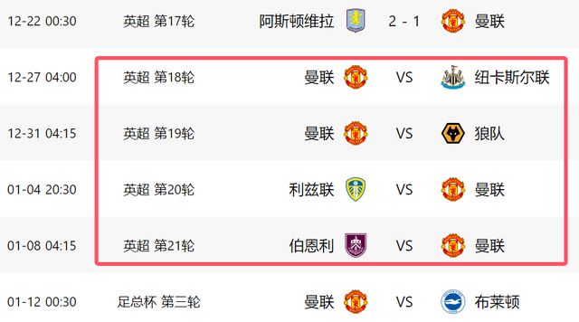 曼联12天4战!对纽卡+3支保级队,全取12分有望进前四争欧冠席位
